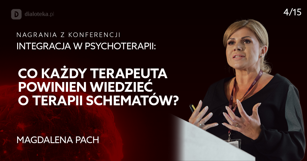 Terapia schematów, oparta na pracy z emocjami, to transdiagnostyczne podejście łączące elementy CBT, psychodynamiczne, Gestalt i teorię przywiązania. Magdalena Pach opisuje ją jako mapę i język rozumienia emocji – szczególnie pomocną w pracy z pacjentami z utrwalonymi trudnościami, w tym z zaburzeniami osobowości.