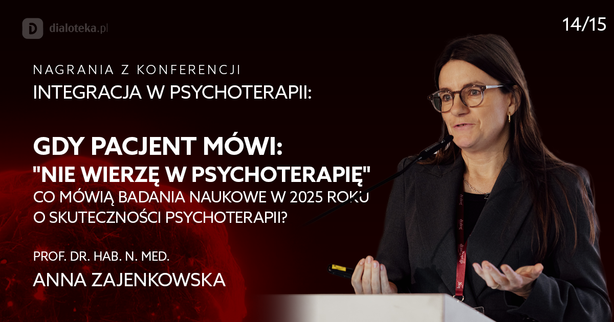 Postawa pacjenta wobec psychoterapii – w tym niewiara w jej skuteczność – może odzwierciedlać stan jego emocji, objawów i wzorców przywiązania. Prof. Anna Zajenkowska omawia, co badania z 2025 roku mówią o efektywności terapii, oraz analizuje, jakie czynniki wpływają na jej sukces, takie jak relacja terapeutyczna, metoda i osoba terapeuty. Definiuje także, czym jest zmiana w psychoterapii i omawia trajektorie tej zmiany.