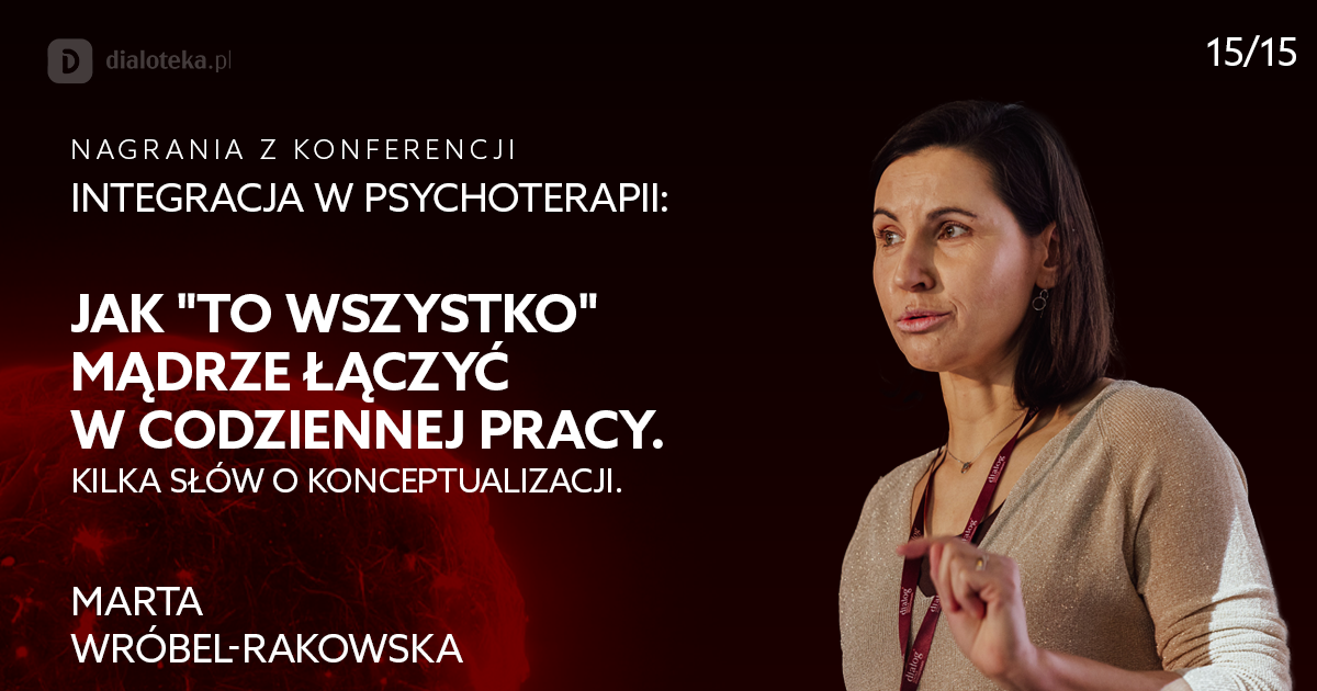 Marta Wróbel-Rakowska omawia, jak mądrze łączyć różne koncepcje i techniki terapeutyczne, koncentrując się na analizie schematów funkcjonowania pacjenta oraz jego relacji z sobą i innymi. Wyjaśnia, jak doświadczenia, biologia i środowisko kształtują problem, z którym pacjent przychodzi do terapii. Psychoterapia staje się przestrzenią do pozytywnych zmian wewnątrzpsychicznych, tworzących nowe narracje. Kluczowe w tym procesie są: ciekawość, twórczość, szacunek i otwartość.