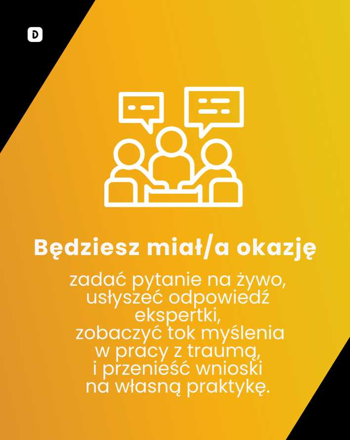 Słuchanie osobistych doświadczeń prowadzącej było bardzo ciekawe i budujące nową perspektywę na temat pacjentów z traumą. — Jak pomóc pacjentom poradzić sobie z negatywnymi skutkami przebytej traumy? |