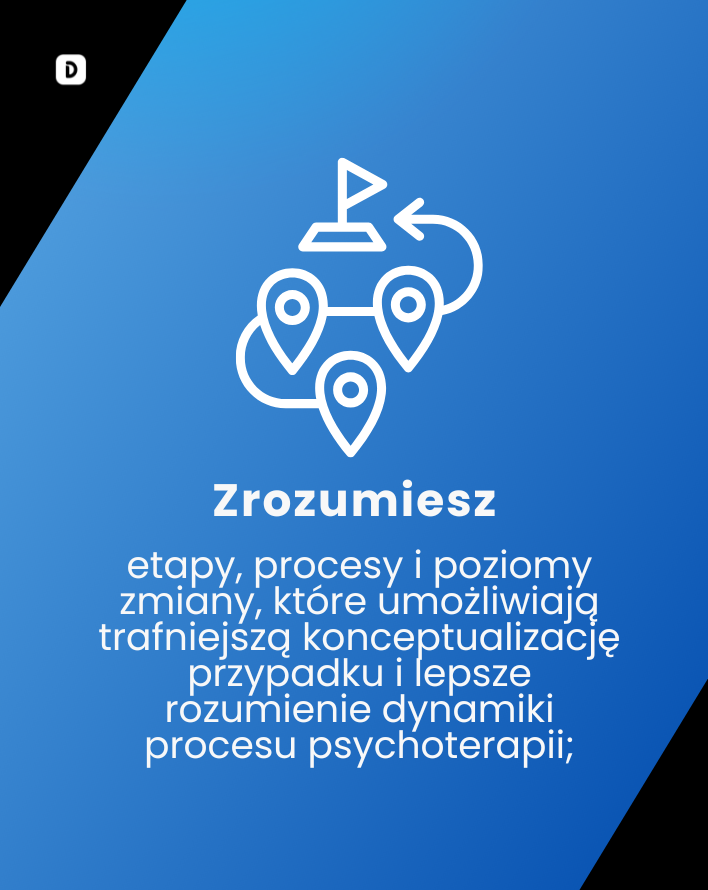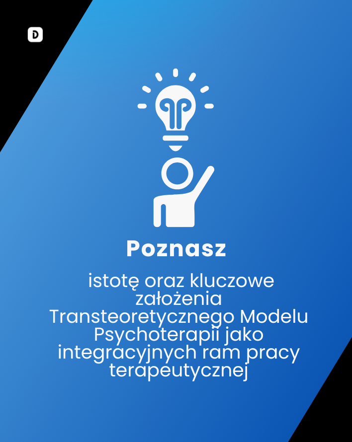 Transteoretyczny Model Psychoterapii dostarcza terapeutom uniwersalnych ram konceptualnych, które mogą być stosowane niezależnie od nurtu psychoterapeutycznego. Uczestnictwo w szkoleniu pozwoli lepiej rozumieć proces zmiany, zwiększyć elastyczność kliniczną oraz skuteczniej wspierać pacjentów w osiąganiu realistycznych i trwałych celów terapeutycznych.