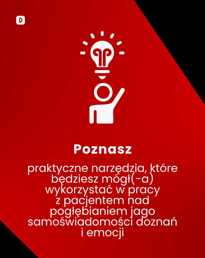 Temat dla mnie bardzo ważny. Spotkanie pokazało na co zwracać uwagę, co jest ważne w relacji, jak podchodzić do pacjenta czy osoby, z którą się pracuje. Jak prowadzić rozmowę, żeby prowadzić pacjenta do uświadamiania sobie swoich emocji, przeżyć. To dla mnie ważny obszar mojej pracy i pracy nad swoimi umiejętnościami lub ich brakiem :) — JAK PRACOWAĆ Z PACJENTEM NAD POGŁĘBIANIEM JEGO SAMOŚWIADOMOŚCI?? |